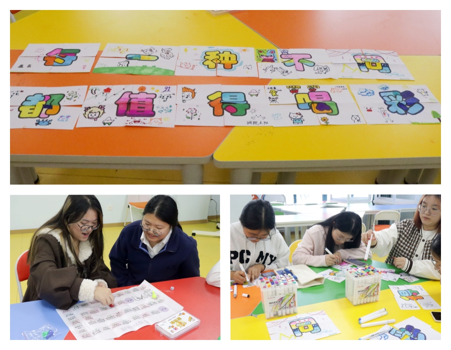 “心理拼贴画”环节更成为此次活动的亮点。每位同学领取专属创意碎片,围绕“每一种不同都值得喝彩”主题,将生活中接纳差异、化解矛盾的温暖瞬间转化为创作灵感,用画笔、彩纸、贴纸勾勒心中的宽容图景,直观呈现出“差异共存、和而不同”的美好愿景。分享环节中,5名同学讲述作品背后的故事,“不同性格的人也能手牵手”“原谅小失误让友谊更长久”等感悟引发全场共鸣。