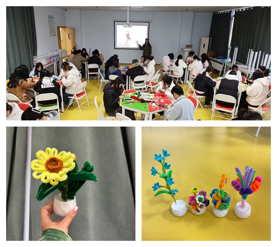 下午四点,大学生心理发展支持中心金相宜老师,以“扭趣自然·解锁生命的多样姿态”为主题,通过观赏生命延时摄影打破单一成长节奏的认知,再亲手用扭扭棒与自然素材进行创作,引导现场40余名同学在观察—体悟—表达中,深刻理解每个生命独有的形态和节奏,教育同学们接纳自己、包容差异、实现情绪与生命的双重提升。