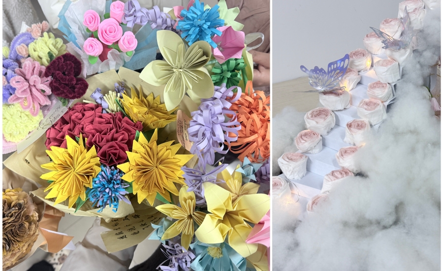 紧随其后的“感恩心语·创意传情”作品征集活动获得了广泛响应。活动累计收到感恩主题作品近1000份,形式涵盖手作、书画、摄影、数字媒体等。同学们将深藏于心的谢意凝于笔端、融于镜头、寄于巧思,作品面向父母、师长、同窗乃至校园中的平凡守护者,每一份创作都流淌着真诚的温度与绵长的情意。