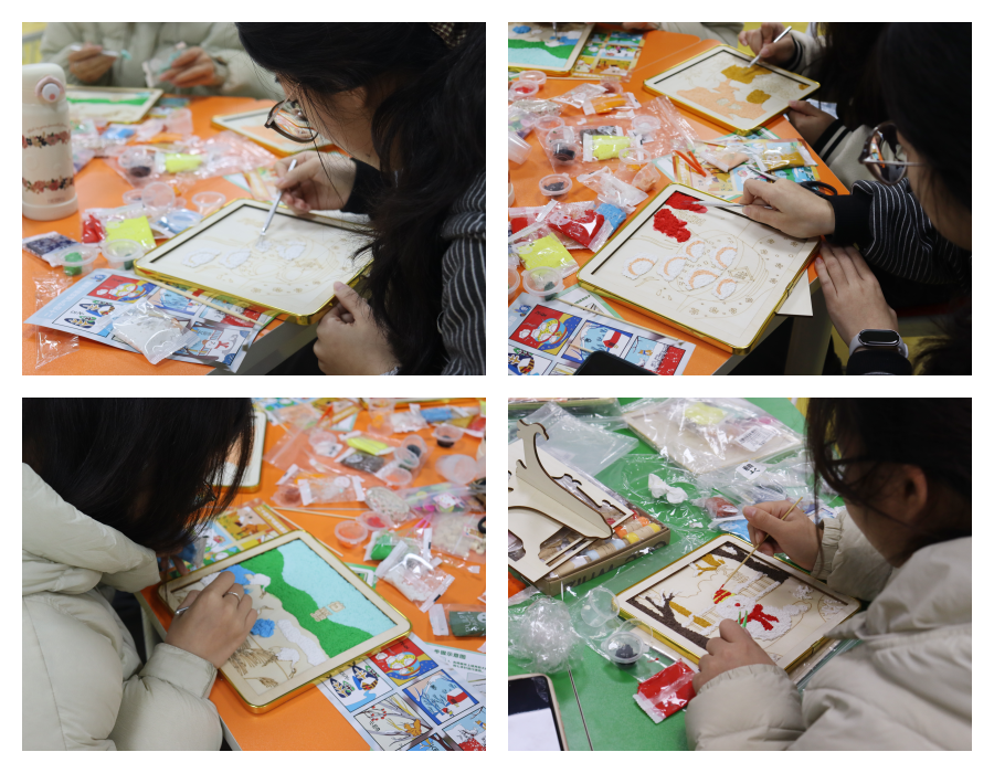 随后的二十四节气纸浆画手作环节,将文化科普与创意实践巧妙结合。心理健康部的同学首先系统讲解了二十四节气的起源脉络、各节气的核心习俗以及背后蕴含的自然与人文意义,让同学们对节气文化有了更全面的认知。紧接着,通过现场演示,详细指导大家掌握纸浆调配、构图技巧、色彩搭配等创作要点。同学们自主选题、尽情发挥创意,将对节气的理解融入画笔与纸浆之中,进一步深化了对传统文化的认同与热爱。