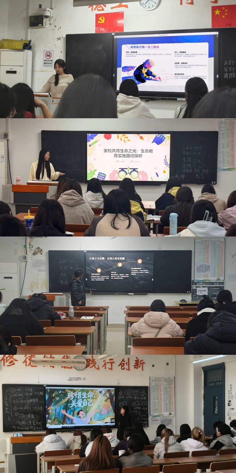 此次主题班会活动形式多样,内容深刻,各班紧密围绕“生命与安全”,结合专业特色与学生实际,通过主题演讲、案例研讨、影音赏析、生命故事分享等多种互动形式展开。班会上,辅导员(班主任)精心引导,同学们踊跃参与,共同探讨如何应对挫折、管理情绪、规划生涯。